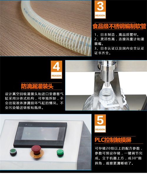 該款半自動食用油灌裝機采用電氣結合的方式,兩個灌裝頭分別有兩個不銹鋼離心泵來控制,做到了單頭單泵的灌裝,壓力恒定,流量更穩(wěn)定,單頭則可直接修改誤差,以保證1%的灌裝精度;1-20L大容量灌裝范圍,滿足您多種灌裝規(guī)格的需求;別看設備小屬于半自動食用油灌裝機,但是在細節(jié)設計上更是精準,有用的真空回吸灌裝頭可進口亞德客氣缸采用分體式機構,可單獨拆卸,不會出現(xiàn)液體滲漏損壞氣缸的情況,而且不會污染輸送鏈板和瓶體。細節(jié)上和全自動食用油灌裝機相比是絕不服輸。存在的PLC控制觸摸屏則更是包含了全自動食用油灌裝機的功能設置參數(shù),禮遇機上成30°傾斜角,觀察更加清晰明了。